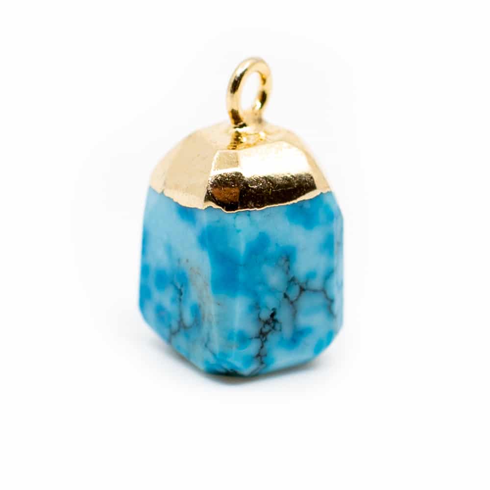 Een prachtige handgemaakte geboortesteen hanger met Turkoois edelsteen. De sieraden smid uit India besteedt veel aandacht aan elke hanger. Er wordt alleen gebruik gemaakt van de mooiste stukken Turkoois. Doordat de edelsteen een natuur product is, heb je altijd een unieke hanger. De afmeting van de edelstenen is ongeveer 10 – 14 mm. De hanger is gemaakt van een koper / messing samenstelling. De hanger is daarnaast verguld (klein laagje goud). Deze geboortesteen staat voor de maand december. Dit is een natuurproduct. Elke hanger is anders qua kleur en vorm.