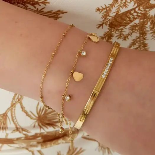 Mooie armband van Roestvrij staal met een 14k plating laagje. De armband bestaat uit zeer fijn materiaal met als leuk detail een infinity knoop. De armbanden bevatten een karabijn slotje en een verleng ketting van ongeveer 5 cm. Leuk om te combineren met onze andere sieraden.