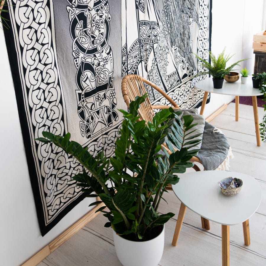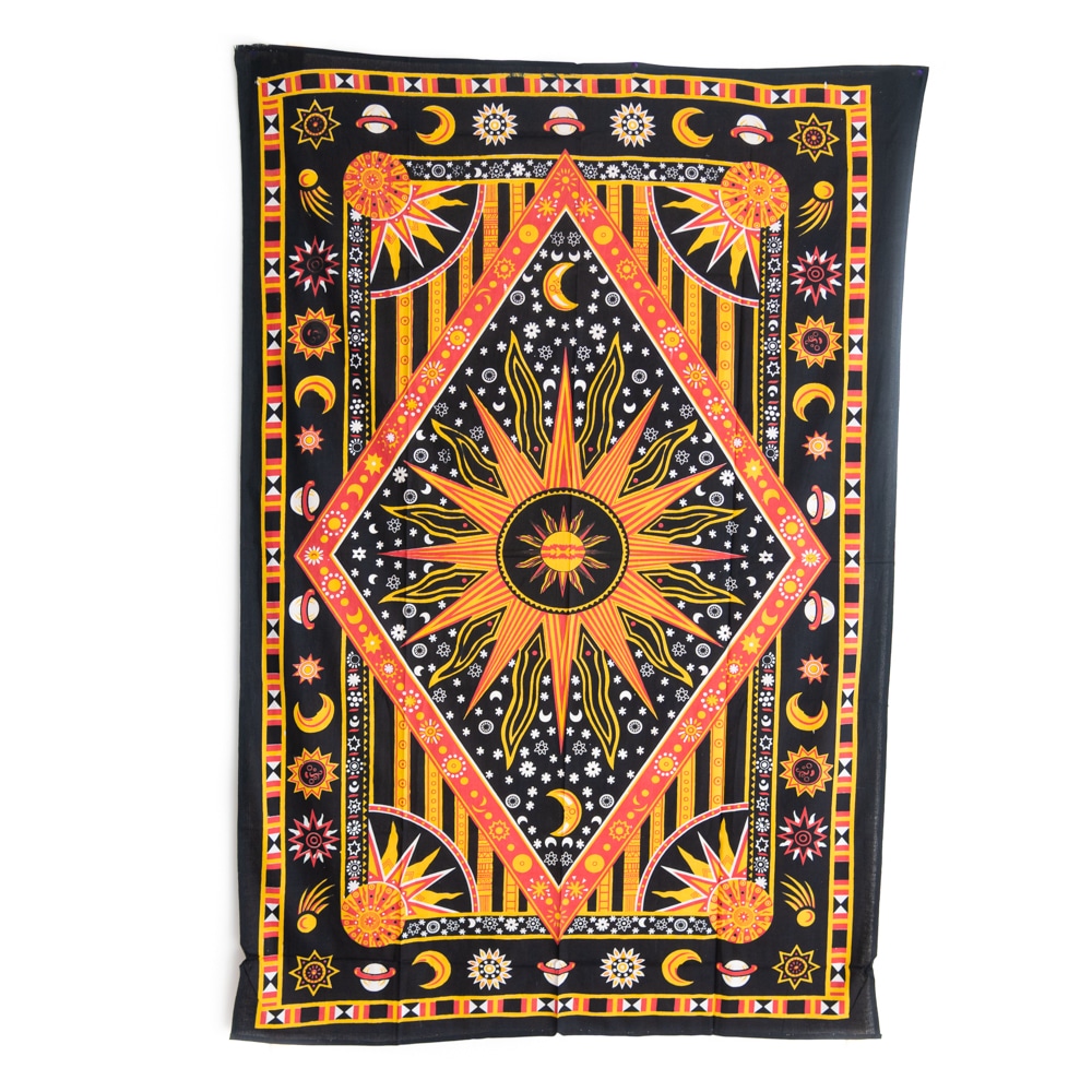 Diese wunderschönen Wandbehänge aus hochwertiger Baumwolle werden in Jaipur, Indien, handgefertigt. Dabei werden den Baumwolltüchern 100% von Hand mit speziellen Sieben und Stempeln verschiedene Farben hinzugefügt. Das Ergebnis ist ein wahrhaft authentischer Baumwollteppich, wie Sie ihn nirgendwo sonst auf der Welt finden werden. Da die Herstellung der Tücher ein manueller Prozess ist, kann es zu einigen Unebenheiten kommen. Dabei kann es sich um Flecken (vor allem auf der Rückseite durch das Wachs), ausgefranste Enden oder Farben / Linien handeln, die einfach nicht 100% deckend waren. Dies lässt sich leider nicht vermeiden. Sie erhalten also immer eine einzigartige Leinwand!
