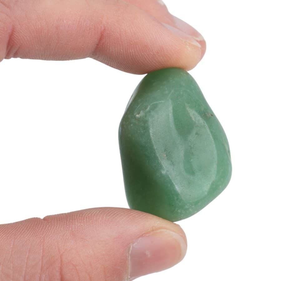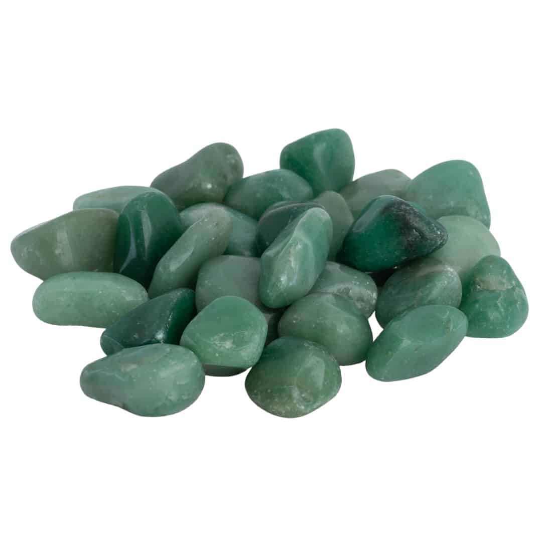 Ungefähr 1 KG getrommelter grüner Aventurin aus Brasilien. Die Stücke sind etwa 2 - 5 cm, aber es variiert pro Kilo. Die Steine sind leicht getrommelt und enthalten Unebenheiten.