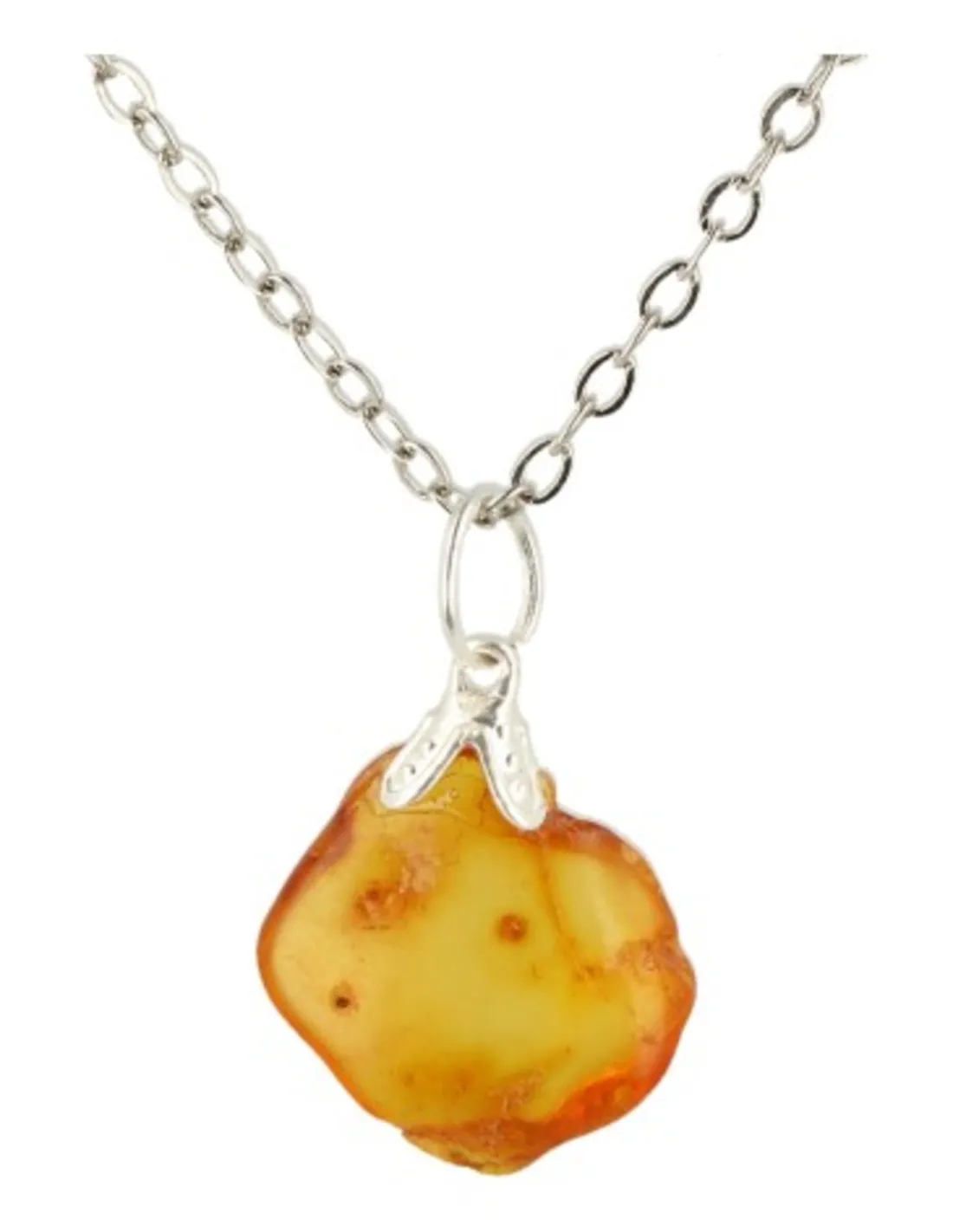 Diese Edelstein-Anhänger aus Bernstein (Amber) ist ein besonderes Naturprodukt: versteinertes und verhärtetes Kiefernharz die Millionen Jahre alt sein kann. Manchmal sind in Bernstein kleine Luftblasen oder fossile Einschlüsse sichtbar, was jedem Anhänger einen einzigartigen Charakter verleiht. Bernstein wird traditionell mit Reinigung, Ausgeglichenheit und eine offene, sorglose Lebenseinstellung.