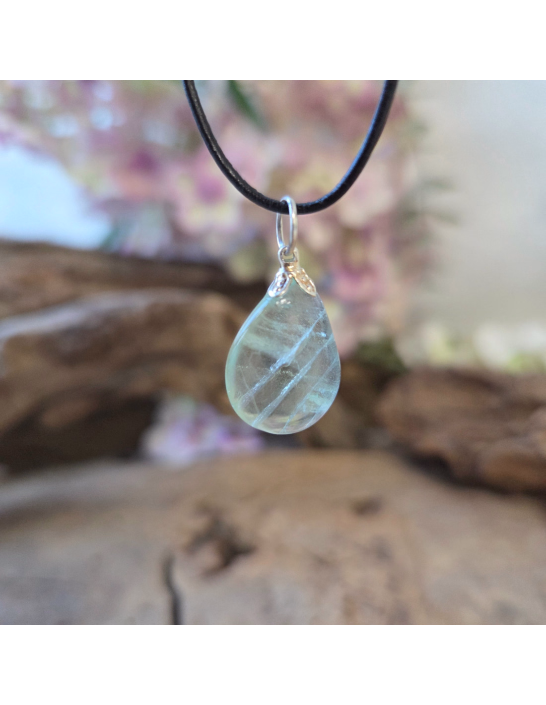 Kombinieren Sie diesen Fluorit-Anhänger mit Bergkristall für zusätzliche Helligkeit oder tragen Sie es während konzentrationsintensive Momente wie Arbeit oder Studium.