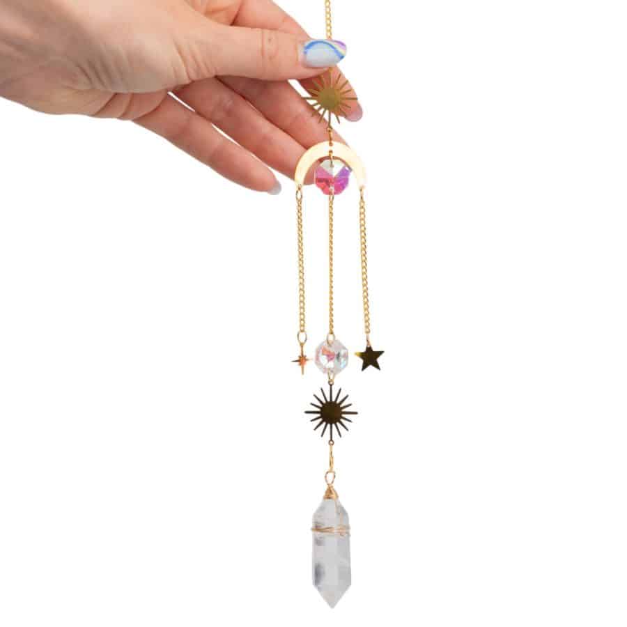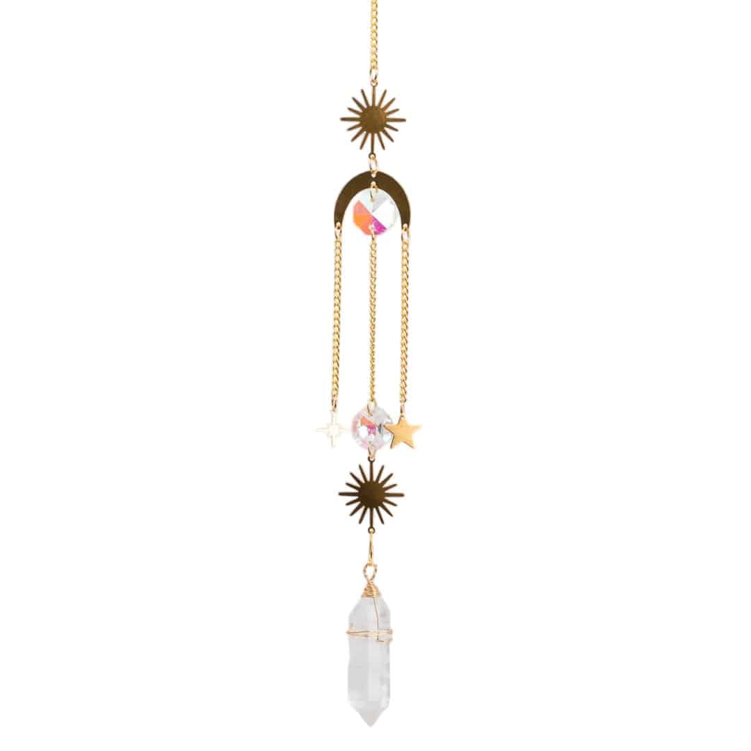 Edelstein-Regenbogen-Anhänger | Sonne und Mond | Bergkristall (40 cm)