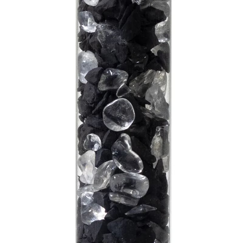 Diese Edelstein-Wasser-Stick enthält Schungit in Verbindung mit Bergkristall. Shungit wird traditionell assoziiert mit Erdung und Schutz, während Bergkristall bekannt ist für seine klärende und ausgleichende Wirkung. Gemeinsam unterstützen sie die Verbindung mit Mutter Erde, fördern Selbsterkenntnis und helfen, einen ausgeglichenen Energiefluss zu erleben.