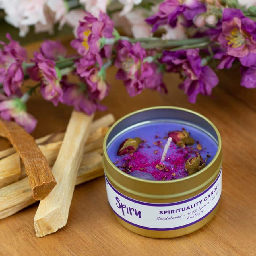 Eine hochwertige Edelstein-Zauber-Duftkerze in einer Dose. Diese Kerze bietet ein echtes Stück Kerzenmagie! Die Kombination aus dem Duft und dem Edelstein Amethyst symbolisiert Spiritualität. Zünden Sie die Kerze an und manifestieren Sie! Die Kerze wird in einem strapazierfähigen Baumwollgeschenkbeutel geliefert. Die Kerzen sind aus natürlichem Sojawachs hergestellt. Jede Kerze hat eine einzigartige Farbe und einen einzigartigen Duft. Die Kerzen verströmen auch Duft, ohne zu brennen. Der Docht ist aus Baumwolle gefertigt. Außerdem wurden einige Rosenblütenblätter hinzugefügt. Jede Kerze brennt stolze 26 Stunden lang! Am Ende bleibt der Edelstein übrig. Die Düfte basieren auf den folgenden ätherischen Ölen: Sandelholz