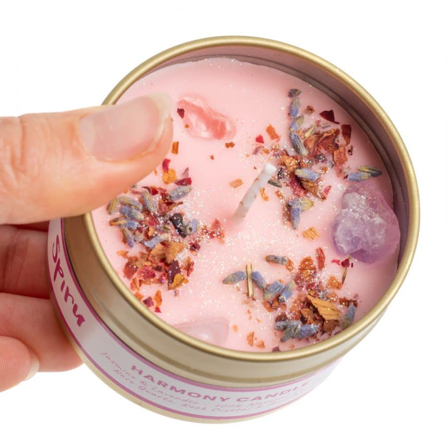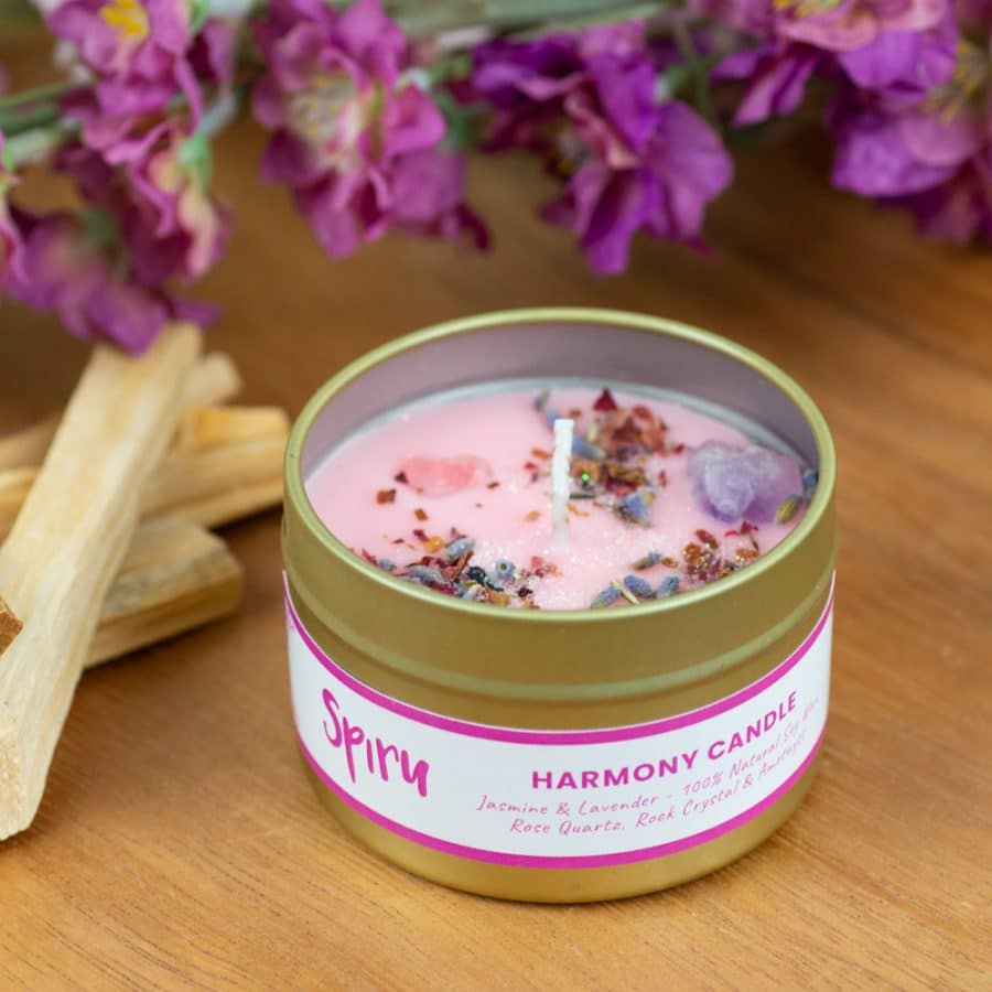 Eine hochwertige Edelstein-Zauber-Duftkerze in einer Dose. Diese Kerze schafft ein echtes Stück Kerzenmagie! Die Kombination aus dem Duft und den Edelsteinen Rosenquarz, Bergkristall und Amethyst (goldenes Dreieck) symbolisiert Harmonie und Gleichgewicht. Zünde die Kerze an und manifestiere dich! Die Kerze wird in einer strapazierfähigen Geschenktasche aus Baumwolle geliefert. Die Kerzen sind aus natürlichem Sojawachs hergestellt. Jede Kerze hat eine einzigartige Farbe und einen einzigartigen Duft. Die Kerzen verströmen auch Duft, ohne zu brennen. Der Docht ist aus Baumwolle gefertigt. Außerdem sind einige Lavendel- und Rosenblütenblätter hinzugefügt worden. Jede Kerze brennt stolze 26 Stunden lang! Am Ende bleiben die Edelsteine übrig. Die Düfte basieren auf den folgenden ätherischen Ölen: Lavendel & Jasmin