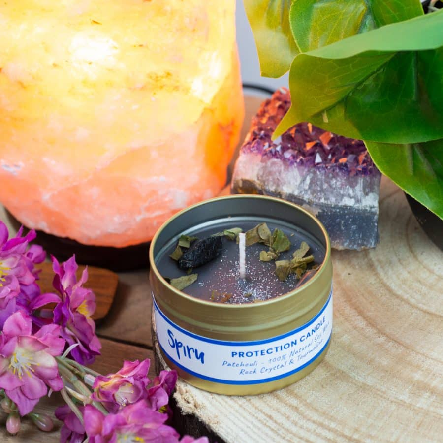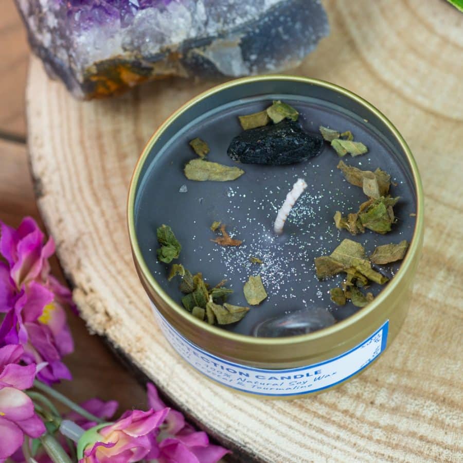 Eine hochwertige Edelstein-Zauber-Duftkerze in einer Dose. Diese Kerze bietet ein echtes Stück Kerzenmagie! Die Kombination aus dem Duft und dem Edelstein schwarzer Turmalin & Bergkristall symbolisiert Schutz. Zünden Sie die Kerze an und manifestieren Sie! Die Kerze wird in einer strapazierfähigen Geschenktasche aus Baumwolle geliefert. Die Kerzen sind aus natürlichem Sojawachs hergestellt. Jede Kerze hat eine einzigartige Farbe und einen einzigartigen Duft. Die Kerzen verströmen auch Duft, ohne zu brennen. Der Docht ist aus Baumwolle gefertigt. Außerdem wurde etwas weißer Salbei hinzugefügt. Jede Kerze brennt stolze 26 Stunden lang! Am Ende bleiben die Steine übrig. Die Düfte basieren auf den folgenden ätherischen Ölen: Patchouli