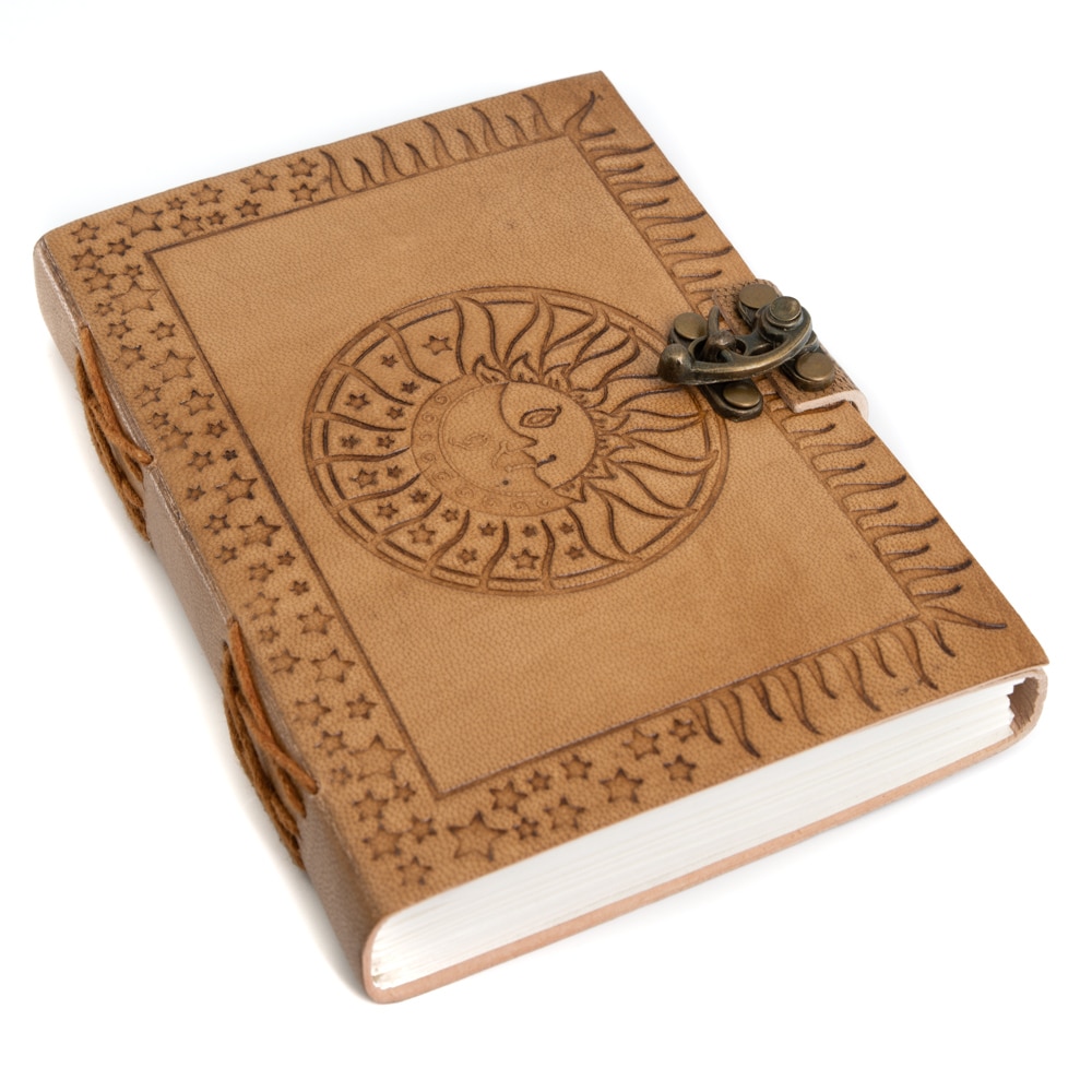 PRODUKT ANSEHENSpirituelles Notizbuch Leder mit Sonne/Mond (17,5 x 13 cm) | Handarbeit