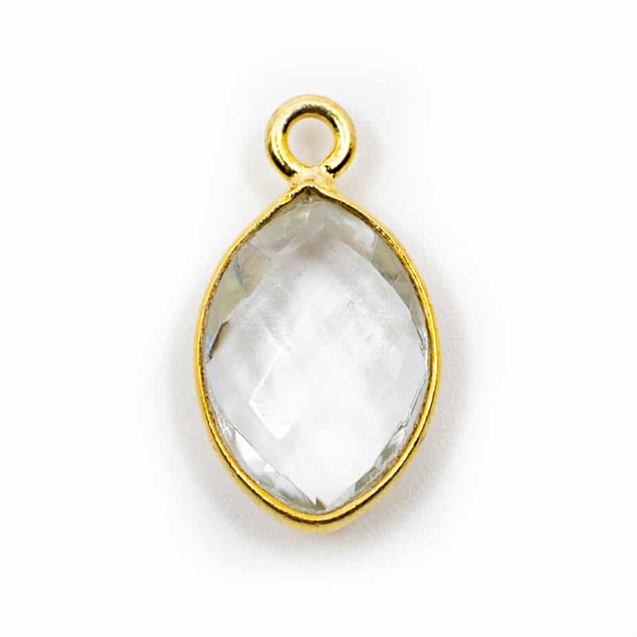 Ein wunderschöner handgefertigter Anhänger mit Bergkristall-Edelstein. Der Schmuckschmied aus Indien widmet jedem Anhänger große Aufmerksamkeit. Es werden nur die feinsten Stücke des Bergkristalls verwendet. Da der Edelstein ein Naturprodukt ist, haben Sie immer einen einzigartigen Anhänger. Die Größe der Edelsteine beträgt etwa 9 - 13 mm. Es handelt sich um ein Naturprodukt. Jeder Anhänger ist anders in Farbe und Form. Der Edelstein Bergkristall steht für den Monat April. Der Bergkristall soll ein starker Heilstein sein. Er ist dafür bekannt, dass er andere Steine stärkt. Diese Anhänger sind aus 925er Sterlingsilber mit einer Goldschicht darauf. Diese Goldschicht ist zerbrechlich, also Vorsicht mit Wasser und Flüssigkeiten wie Schweiß, Parfüm und Hautpflegeprodukten. Es ist nicht garantiert, dass die Anhänger abfärben.