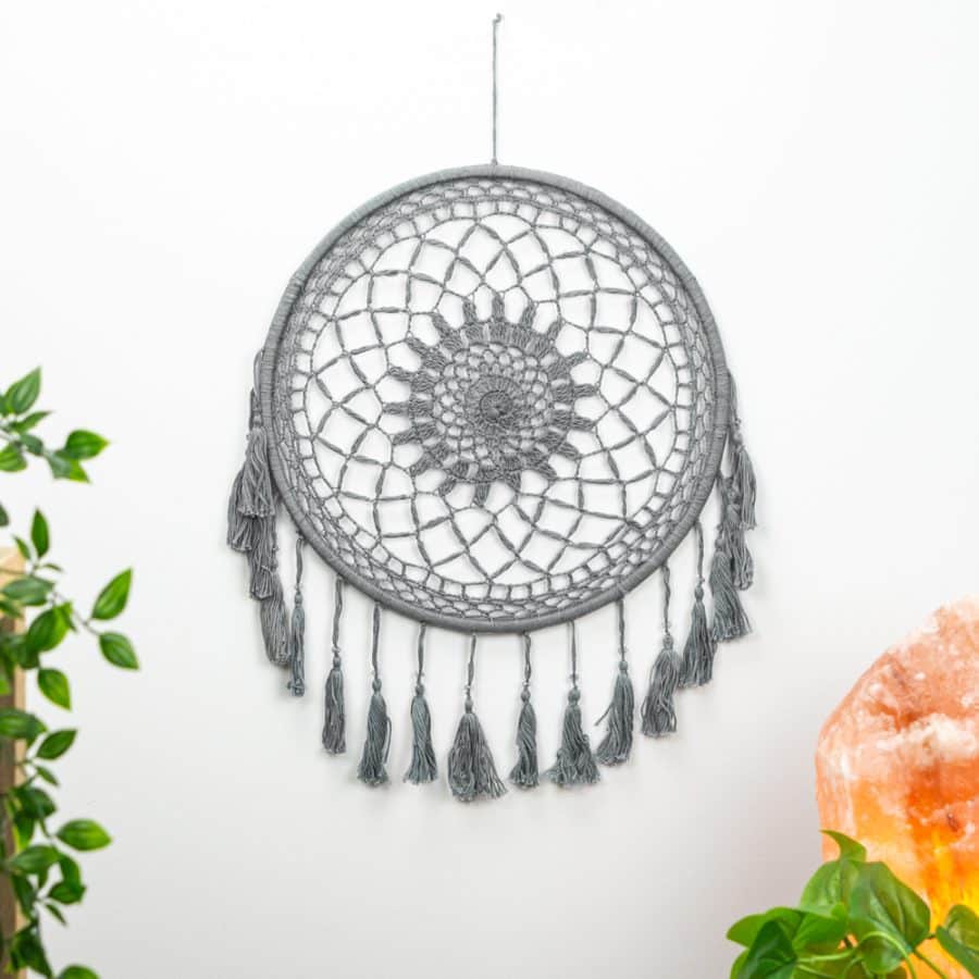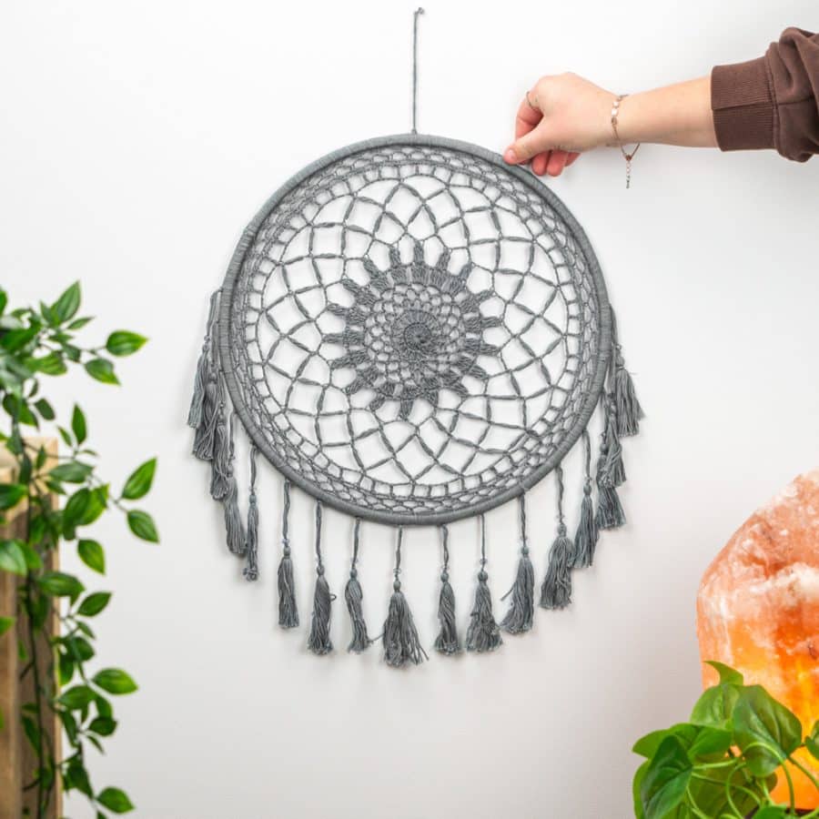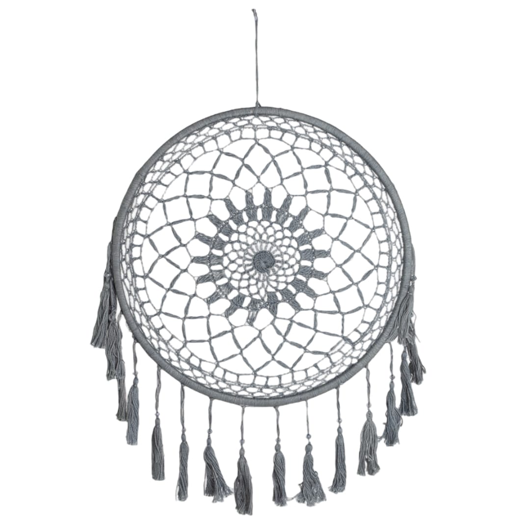 Ein schöner handgefertigter großer Traumfänger. Eine schöne symbolische Wanddekoration! Handgefertigt mit Liebe Der Lieferant ist sehr auf soziale Verantwortung bedacht. In der Organisation in Indien legt die Inhaberin großen Wert auf faire Löhne und gute Arbeitsbedingungen. Mit einem Team von mehreren Frauen entwerfen und fertigen sie einzigartige Anhänger nach ihrem eigenen Entwurf. Alle Produkte sind handgefertigt, um die Qualität zu garantieren.
