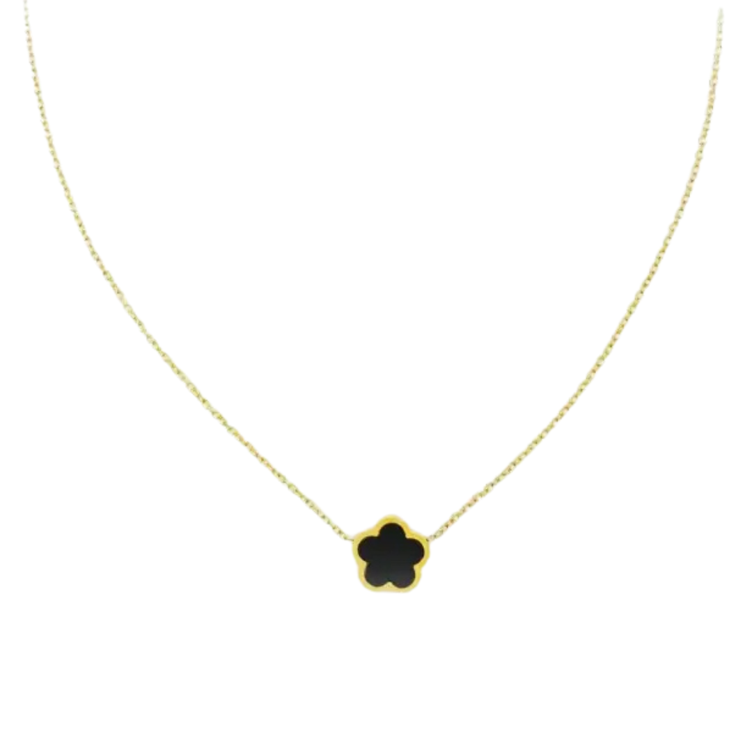 Prachtige ketting gemaakt van Roestvrij staal met een 14k laagje plating. De ketting is zeer fijn. De hanger is ook van roestvrij staal. Dit is een bedel in de vorm van een klaver/bloem. Leuk om te combineren met onze andere minimalistische sieraden.