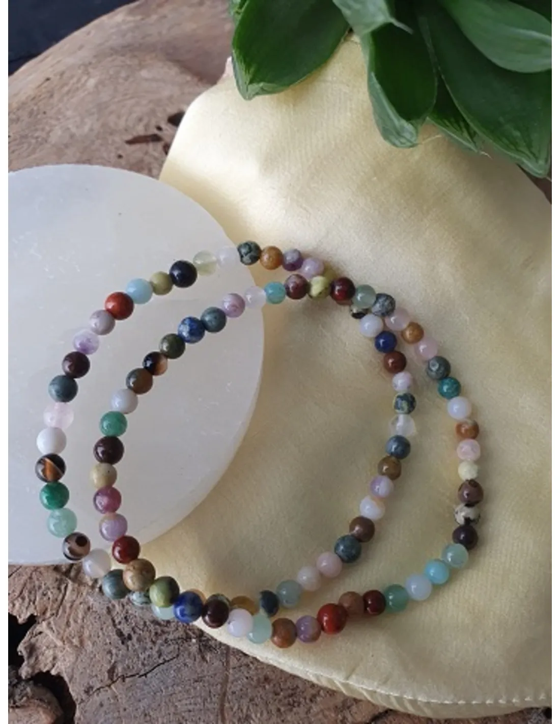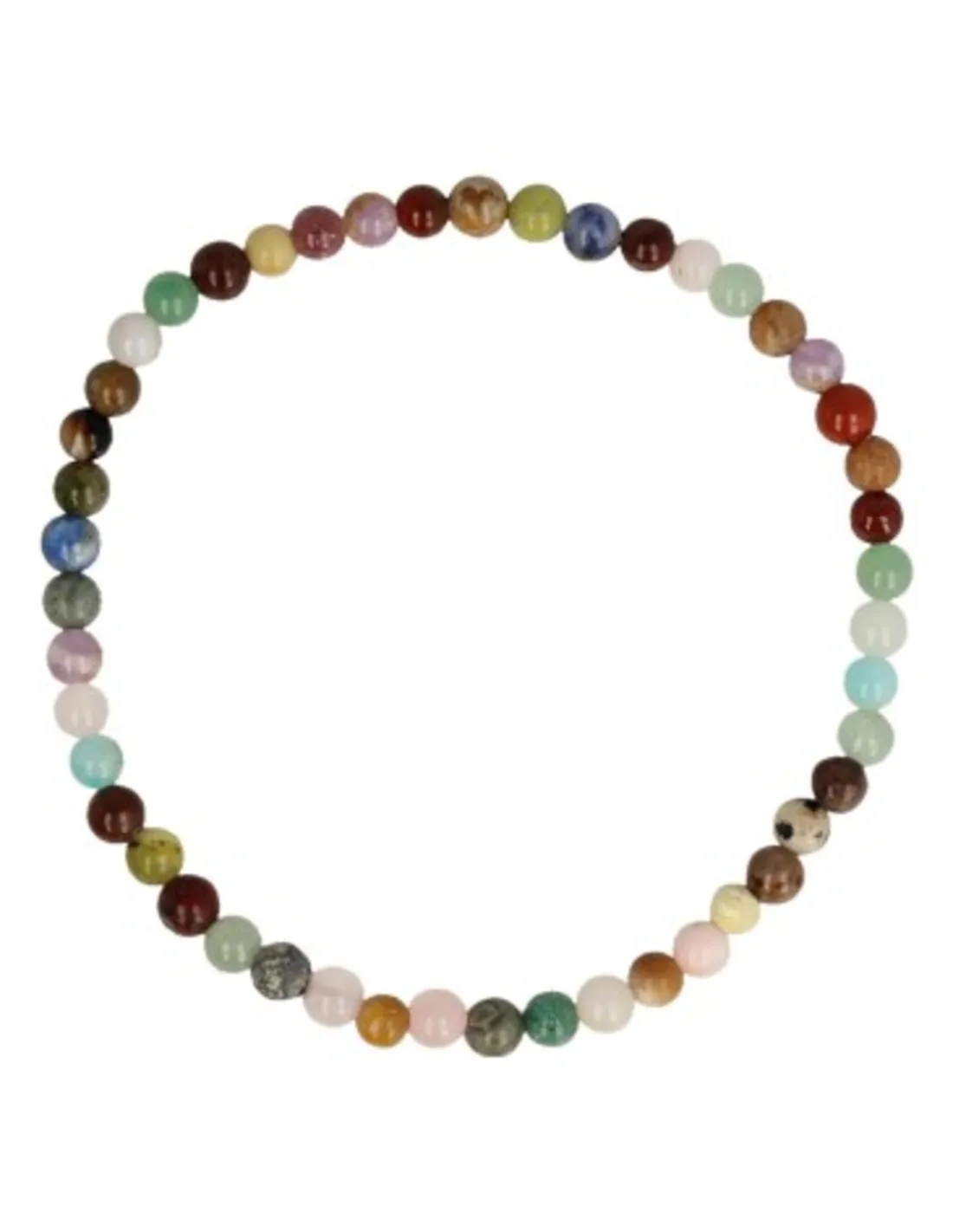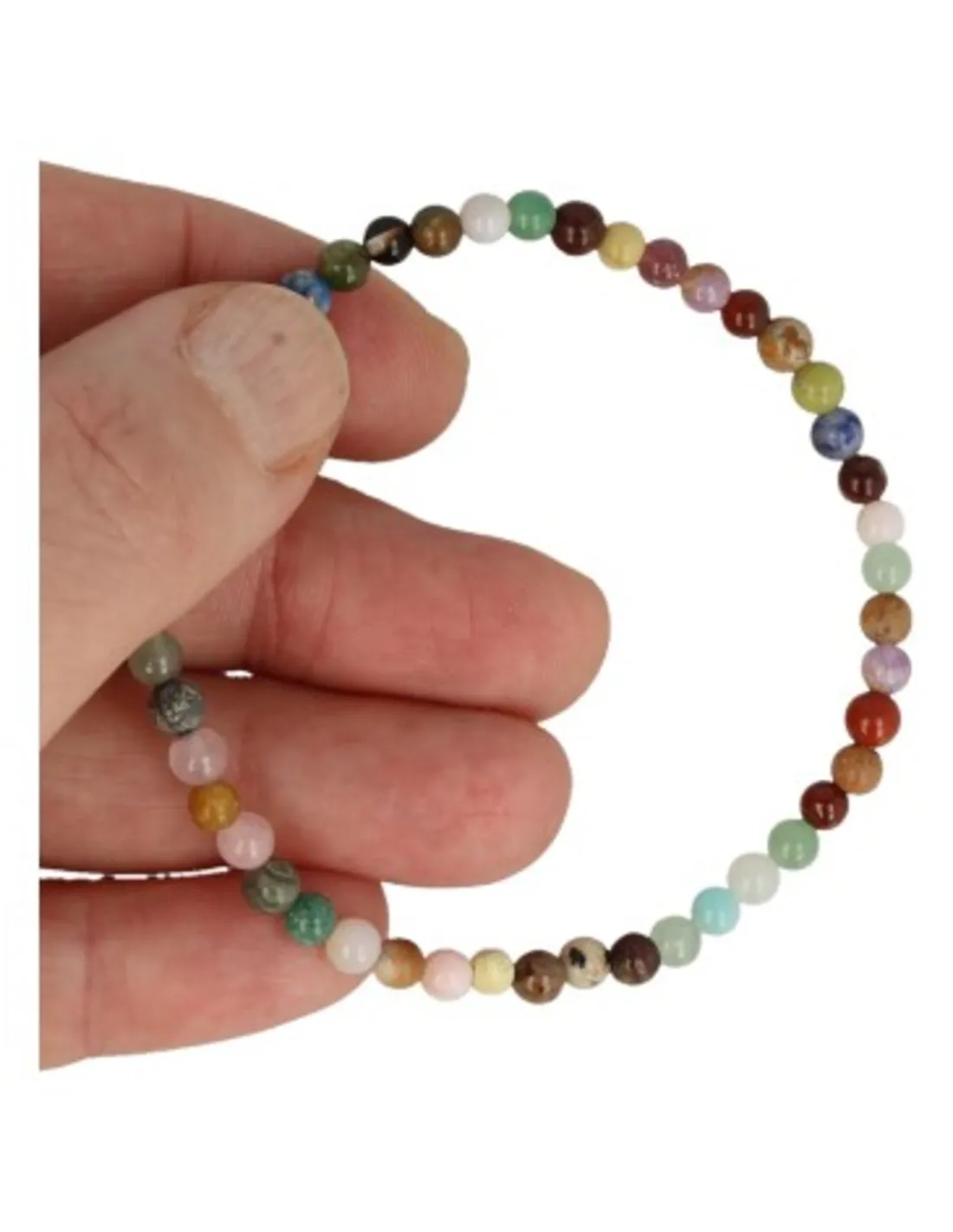Dieses Discomix-Perlenarmband besteht aus kleinen 4 mm großen Perlen aus verschiedenen Edelsteinen in einem bunten Farbmix. Es ist auf ein Gummiband aufgefädelt und kann bequem allein oder in Kombination mit anderen Armbändern aus der Kollektion getragen werden.