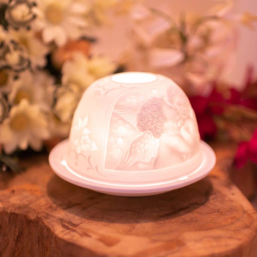 Porzellan ist hitzebeständig und weist nach der Glasur Schmutz und Feuchtigkeit ab. Unglasiertes Porzellan oder "Biskuit" wird in der Regel für Stimmungslichter verwendet, da dieses Material das Licht auf subtile Art und Weise durchlässt.