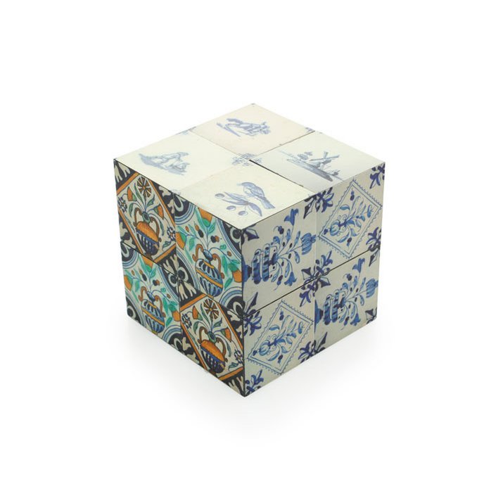 Eine schöne Kombination aus handwerklichem Fliesendesign und der Verspieltheit eines Puzzle-Würfels. Sowohl eine Herausforderung als auch ein dekoratives Objekt.