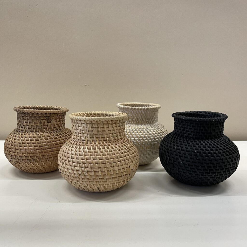 Rotan vaas gemaakt op Bali. Mooi decoratief item op zichzelf of in combinatie met droogbloemen of een mooie tak.