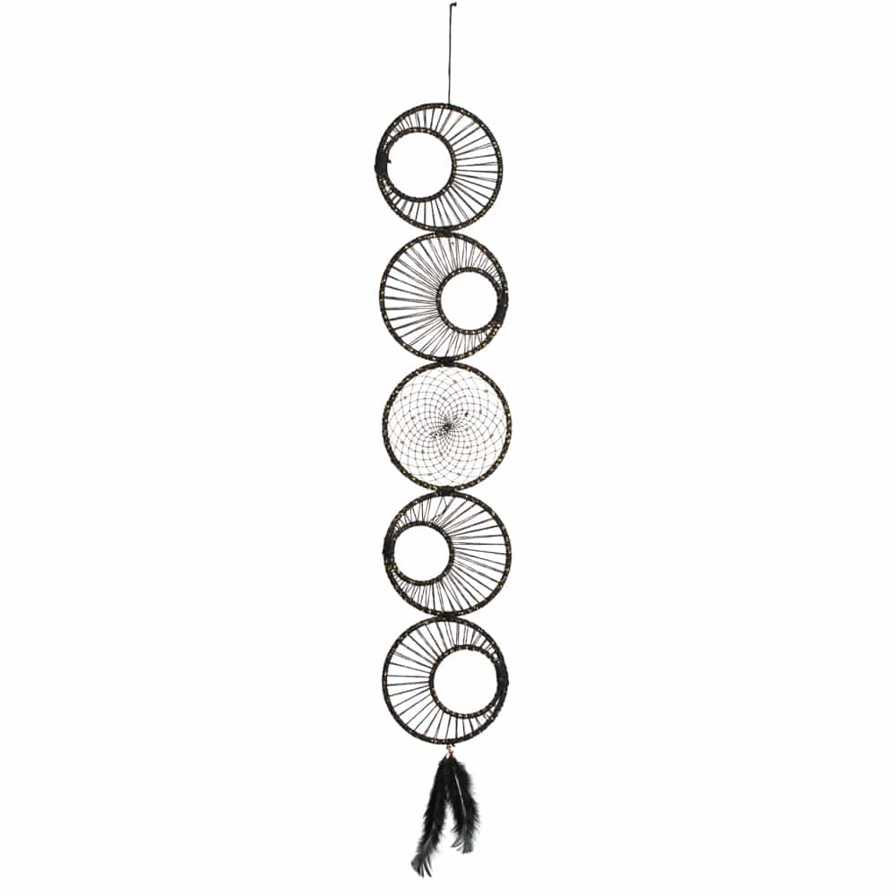 PRODUKT ANSEHENHandgemaakte Dromenvanger Maanfases| Zwart & Goudkleurig Lurex Textielvezel | Cirkels | (92 cm)