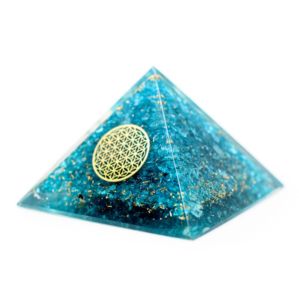 PRODUKT ANSEHENOrgonit Pyramide Blauer Topas | Blume des Lebens | (70 mm)