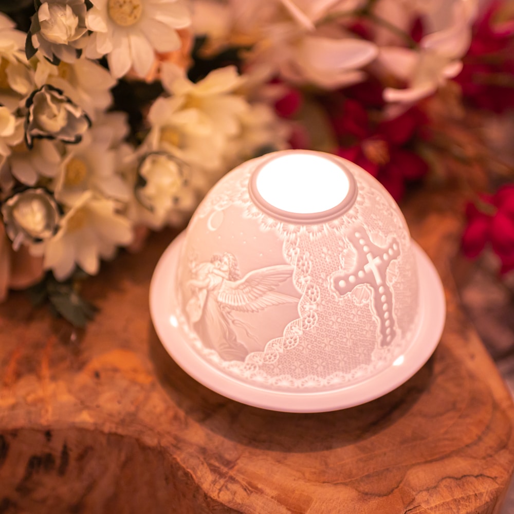 PRODUKT ANSEHENEngelen zijn volgens de katholieke leer door God geschapen geestelijke wezens. Ze worden als personen beschouwd omdat ze over intelligentie en vrije wil beschikken. Engelen hebben geen lichaam en zijn onsterfelijk. De goede engelen dienen God, bejubelen Hem, fungeren als zijn boodschapper en beschermen de gelovigen. Deze porseleinen oplichtende producten voor waxinelichtjes zijn gemaakt van een speciale, zeer fijne kleisoort. Toegevoegde componenten zorgen voor het oplichtende effect door het bijna transparante aardewerk, dat niet geglazuurd is, maar toch een gladde afwerking heeft. Ervaren kunstenaars hebben magisch vakwerk afgeleverd, met bijzonder reliëfwerking, in prachtige details. Vanuit elke hoek zie je wat anders. Het...