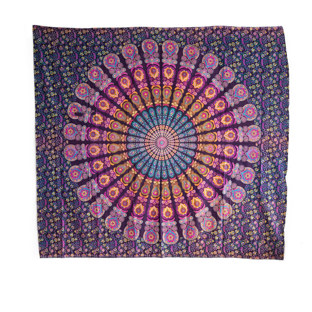 Authentischer Wandteppich Baumwolle Lila Mandala (240 x 210 cm)
