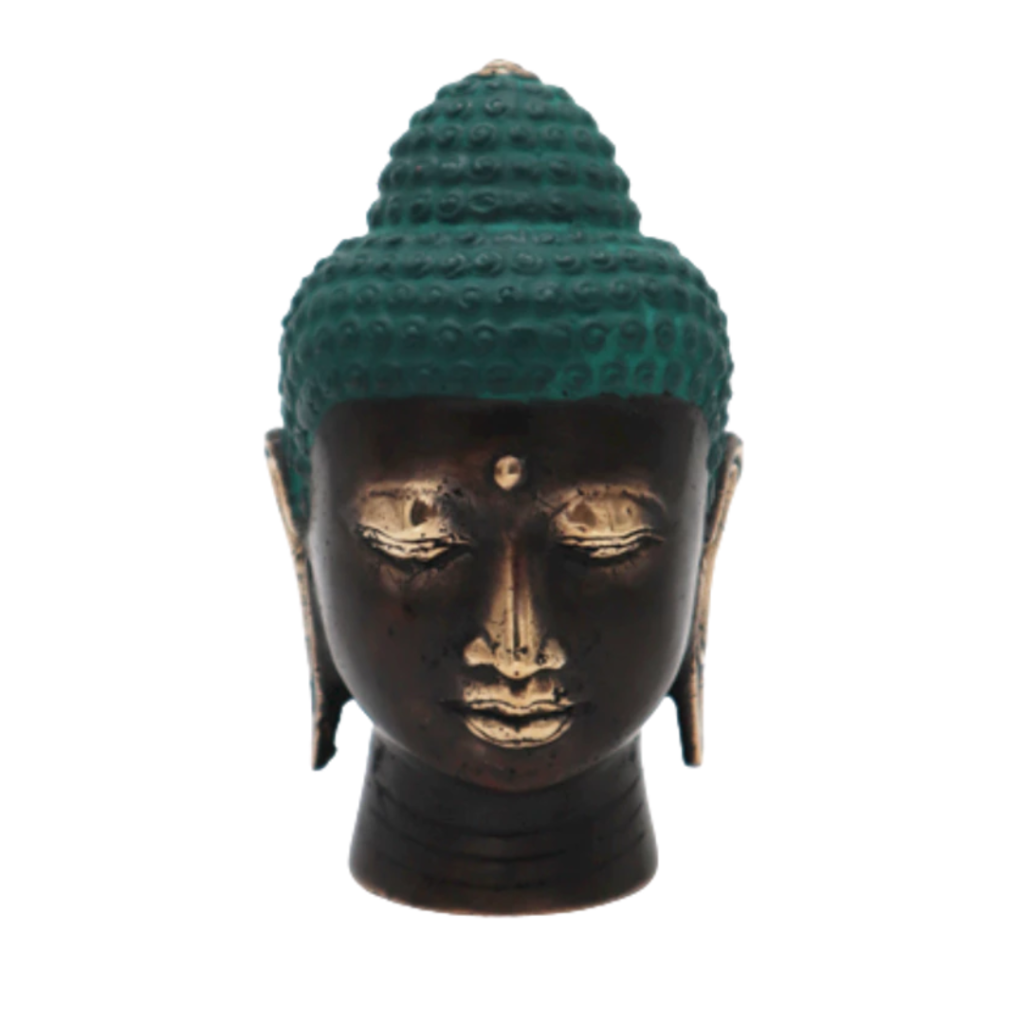 PRODUKT ANSEHENGroßer Buddha-Kopf aus antikem Messing