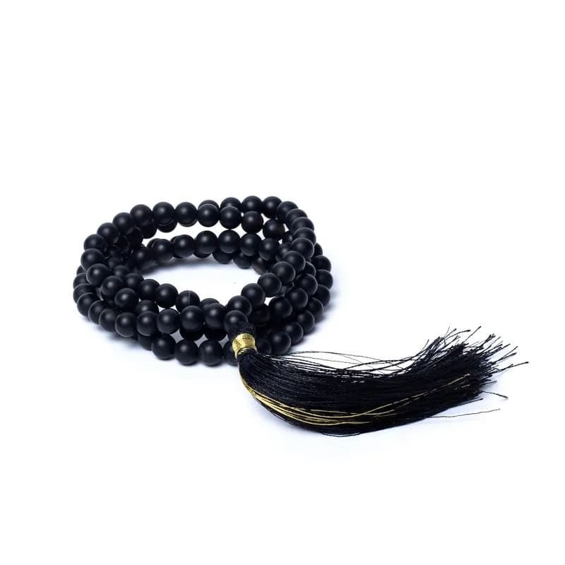 Mala Rudraksha 108 Perlen mit orangefarbener Quaste | 0,8 cm